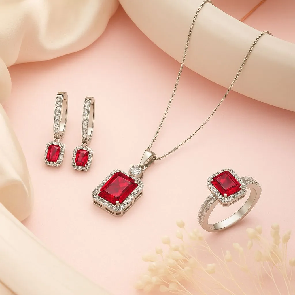 Red ruby colour Valentine’s Day gift in a red jewellery box for your Valentine by Shree Vrinda Jewellery